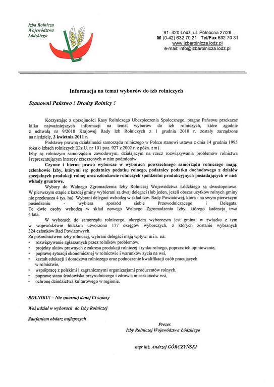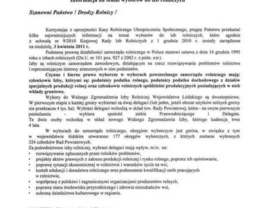 Korzystając z uprzejmości Kasy Rolniczego Ubezpieczenia Społecznego, pragnę Państwu przekazać kilka najważniejszych informacji na temat wyborów do izb rolniczych, które zgodnie z uchwałą nr 9/2010 Krajowej Rady Izb Rolniczych z 1 grudnia 2010 r. zostały zarządzone na niedzielę, 3 kwietnia 2011 r.