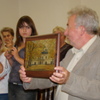W piątkowy wieczór (5 września 2008 r.) w Złoczewskim pałacu odbyło się spotkanie z twórcą ludowym Kazimierzem Włochaczem. Przybyli na spotkanie mieli możliwość obejrzeć tylko cześć z prac artysty, które składały się na wystawę tematyczną - „Biblia w drewnie". Spotkanie rozpoczęto od toastu za zdrowie i za twórczość artysty. Na ręce Pana Kazimierza złożono kwiaty i życzenia. Burmistrz Miasta Złoczewa wręczył twórcy lokalny prezent w postaci oprawionego zdjęcia. Wyrażanie poruszony Pan Kazimierz podziękował zgromadzonym, a zwłaszcza Pani Zofii Szymczak i Panu Józefowi Mucha, którzy, jak podkreślił - odkryli go. Podziękował również dyrekcji Miejskiego Ośrodka Kultury w Złoczewie, za wystawę i promocję jego twórczości. Następnie odpowiadał na pytania związane z jego pasją. Jak mówił przygodę z rzeźbą rozpoczął w latach młodości, kiedy to rękodziełami zdobywał serca dziewcząt ale i dorabiał sobie. Rzeźbi w każdym rodzaju drewna. Obok ludowych świątków potrafi wystrugać z drewna również zegary. Jego dorobek jest tak duży, że składuje go w pudłach na strychu. Zebrani zastanawiali się również nad działaniami zmierzającymi do promocji twórczości Pana Kazimierza, wszak obok takiego talentu nie należy przechodzić obojętnie.