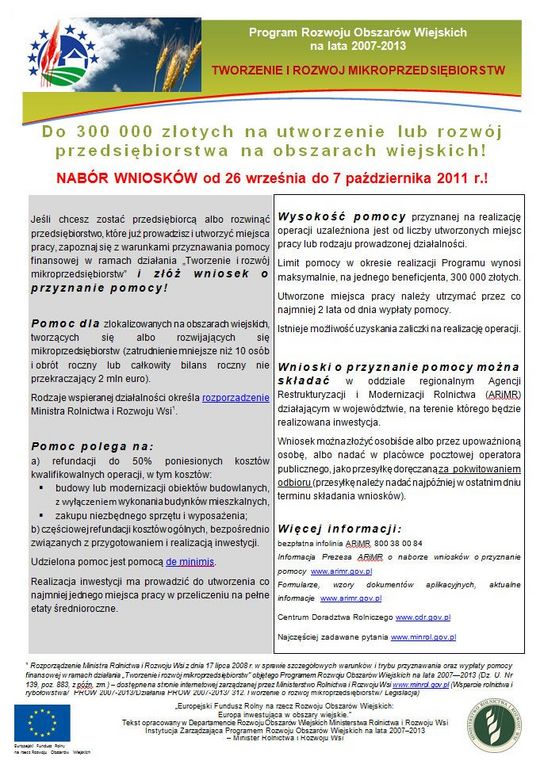 Nabór wniosków na tworzenie i rozwój mikroprzedsiębiorstw.