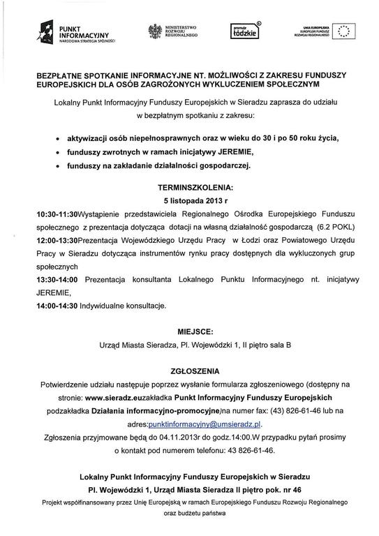 Bezpłatne spotkanie informacyjne nt. możliwości z zakresu Funduszy Europejskich dla osób zagrożonych wykluczeniem społecznym
