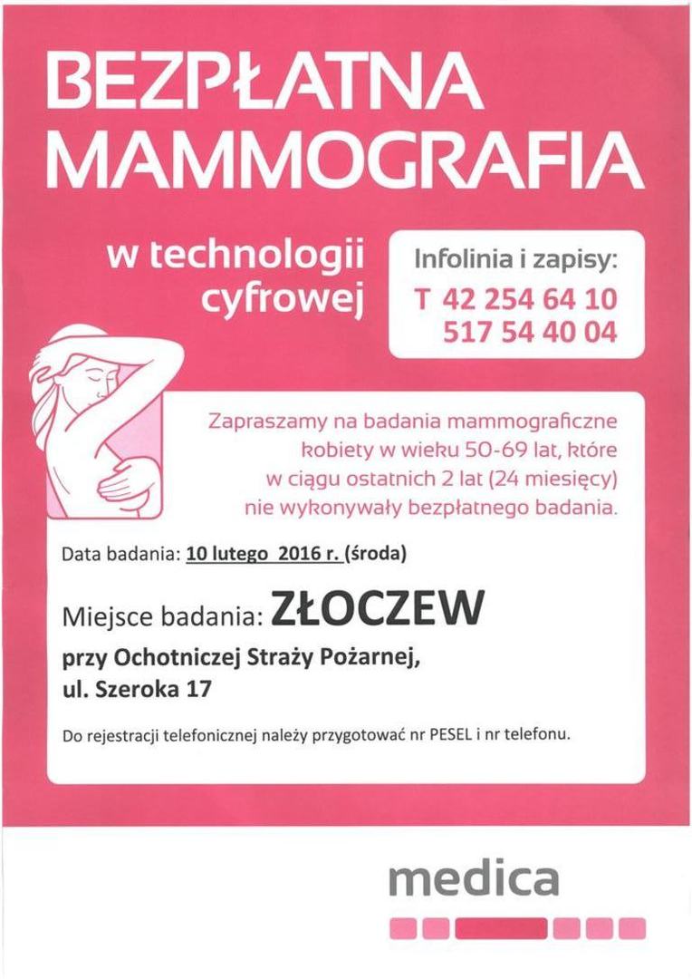 Bezpłatne badania mammograficzne.
