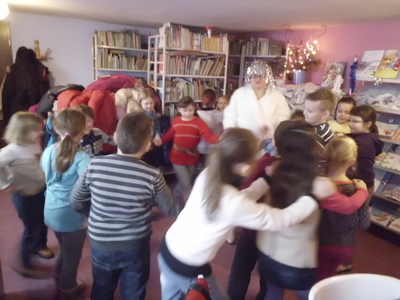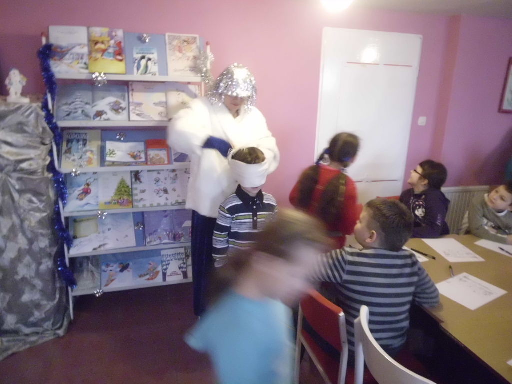 w Zimowej Krainie, jaką stała się tego dnia biblioteka. Uczniowie bawili się w zimowe zgadywanki, wycinanie śnieżynek, tańczyli