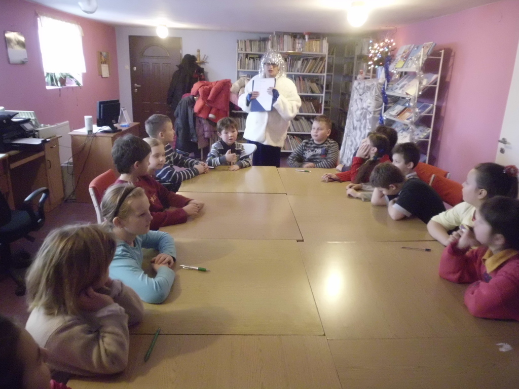 04.02.2013r., gdy dzieci z młodszych klas Szkoły Podstawowej w Unikowie odwiedzały Filię Biblioteczną, zawitał tam specjalny gość. Za oknem padał śnieg i wszystko pokryło się białym puchem,