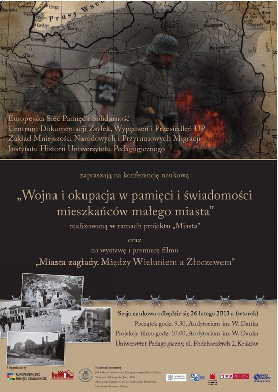 W dniu 26 lutego br w audytorium im. W.Danka Uniwersytetu Pedagogicznego w Krakowie odbyła się konferencja naukowa „Wojna i okupacja w pamięci i świadomości mieszkańców małego miasta” oraz wystawa i premiera filmu „Miasta zagłady. Między Wieluniem a Złoczewem”. W konferencji udział wzięły: Burmistrz – Jadwiga Sobańska i Pani Urszula Łukomska – Kustosz Pamięci Narodowej.