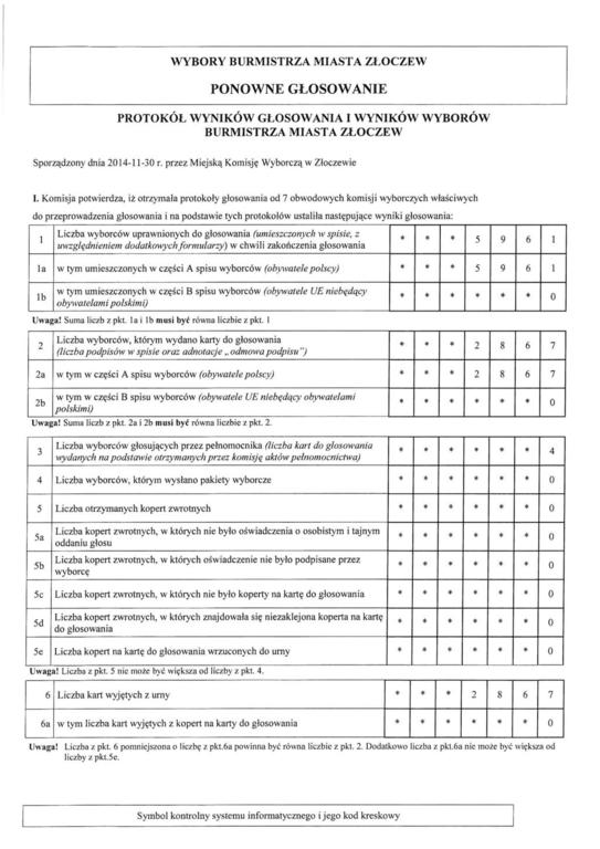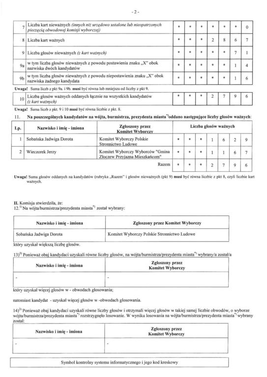 Wyniki II TURY WYBORÓW NA BURMISTRZA MIASTA ZŁOCZEWA
