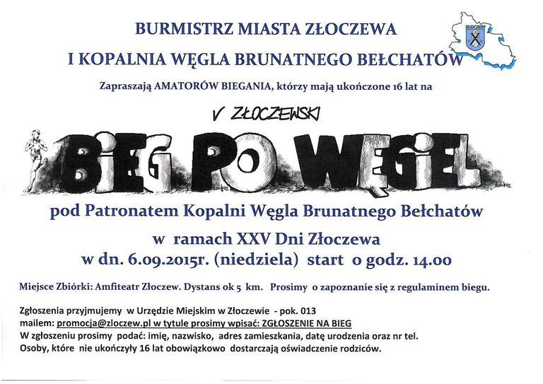 Zapraszamy do udziału w V Złoczewskim Biegu "Po węgiel" pod patronatem KWB Bełchatów